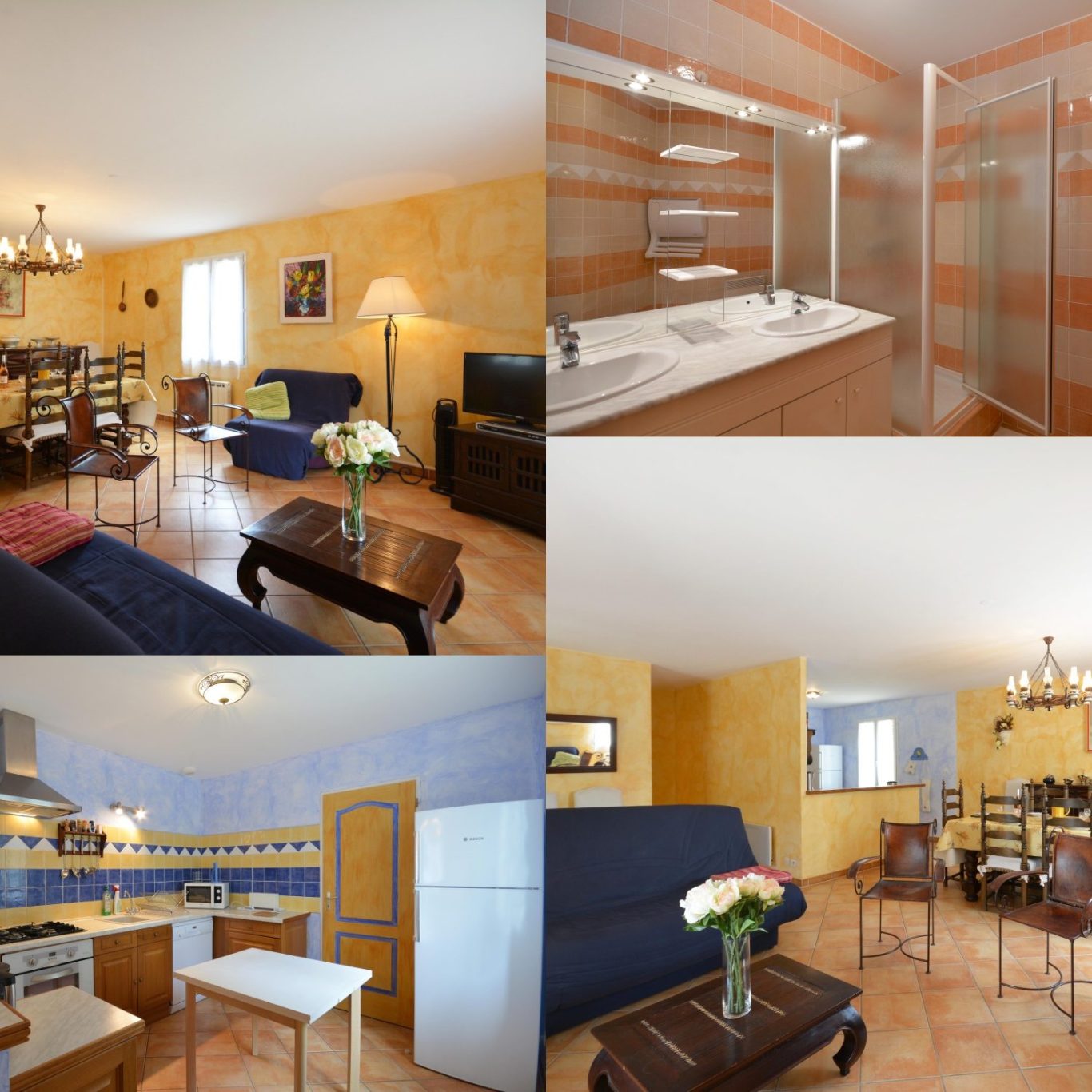 La villa comprend 3 chambres, salle à manger salon, cuisine américaine entièrement équipée, cellier, salle d'eau, wc indépendant.